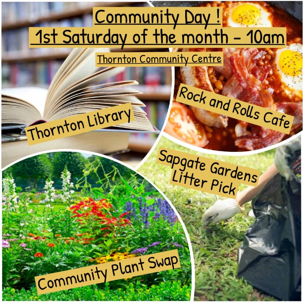 As always on the first Saturday of the month, Sapgate Gardens will be holding their litter pick, and our friends at Thornton Library will be open as usual. Plus there’s Community Plant Swap and the Rock and Rolls Cafe will be open for fantastic food and drinks.