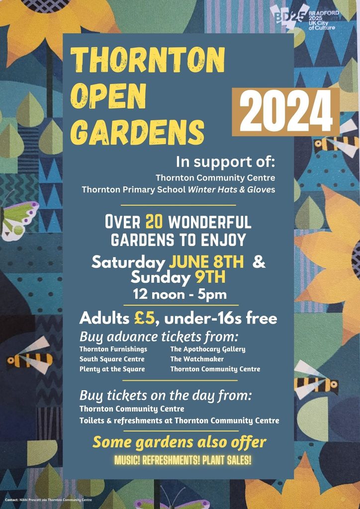 And finally, Saturday 8th & Sunday 9th June, is one of the best events in the Thornton social calendar, the Open Gardens. All the details on where to buy tickets are below.